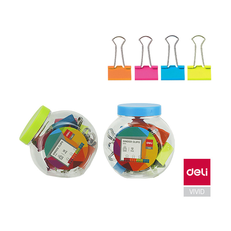 Klipy kovové barevné DELI - 25 mm / 12 ks / barevný mix