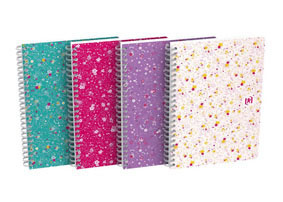 Odolné, ohebné desky z kartonu s příjemným jemným hladkým povrchem Soft Touch a s atraktivním květinovým potiskem, Dvojitá drátová vazba zajišťuje otevírání stránek o 360°, Extra jemný a hladký papír Optik paper gramáže 90 g/m? - nedochází k prolínání inkoustu na druhou stránku, Levý okraj, Možnost naskenování pomocí aplikace Scribzee, Barevný assort