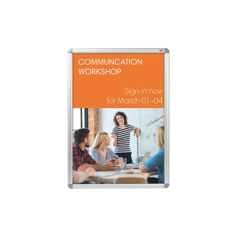 Clip rámy Nobo se snadno používají a umožňují vystavovat plakáty a informace chráněné proti vlivům počasí. Antireflexní fólie z PVC je chrání před prachem a špínou, vkusný hliníkový rám zaručuje konzistentní a elegantní vzhled. Používejte vývěsky pro vytvoření koordinovaného, profesionálně vypadajícího prostředí. Formát A1.