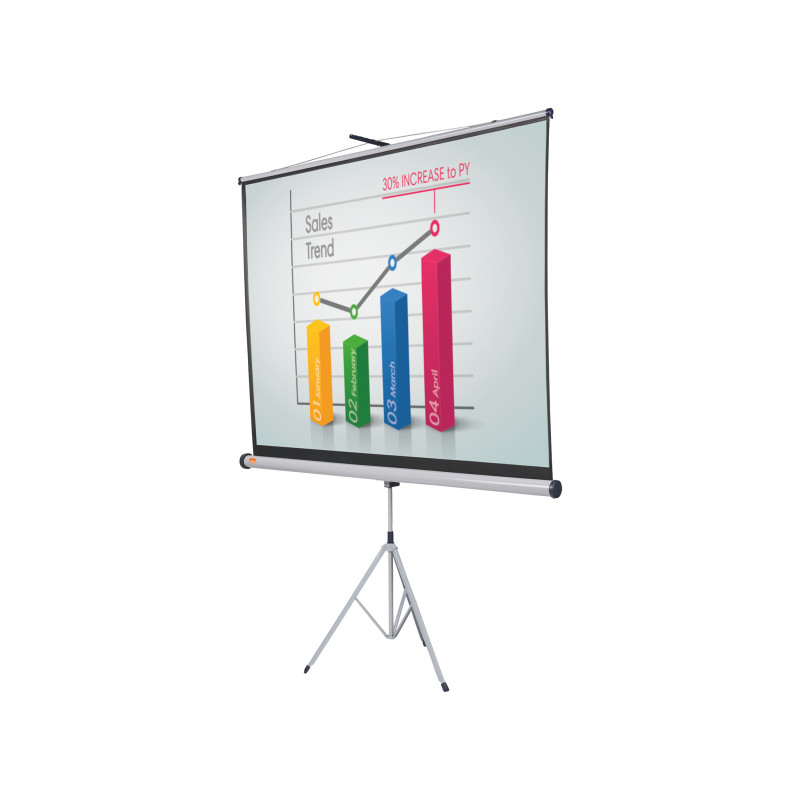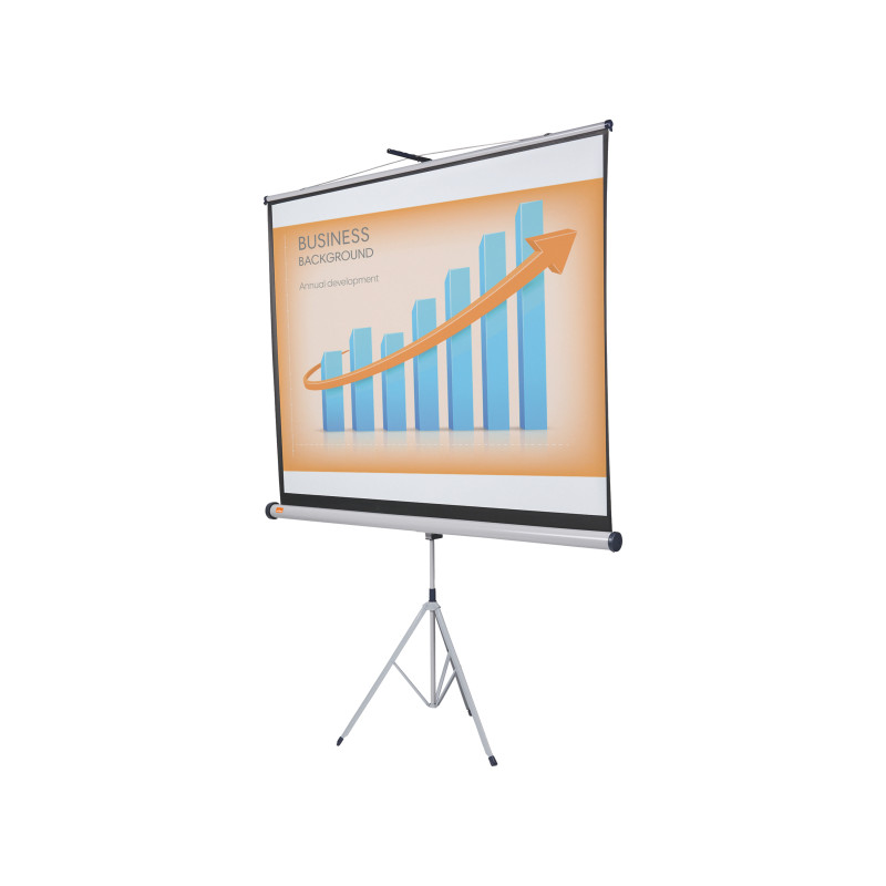 Široká škála velmi kvalitních, univerzálních projekčních pláten na trojnohém stojanu. Zářivý matně bílý povrch plátna s černým okrajem zaručuje ostrý, podrobný obraz, který zřetelně uvidí všichni diváci. Lze je snadno zasunout do pouzdra, aby bylo chráněno před poškozením. 2000 × 1310 mm.