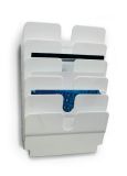 Nástěnný držák na prospekty se 6 přihrádkami na informace ve formátu A4 na výšku.