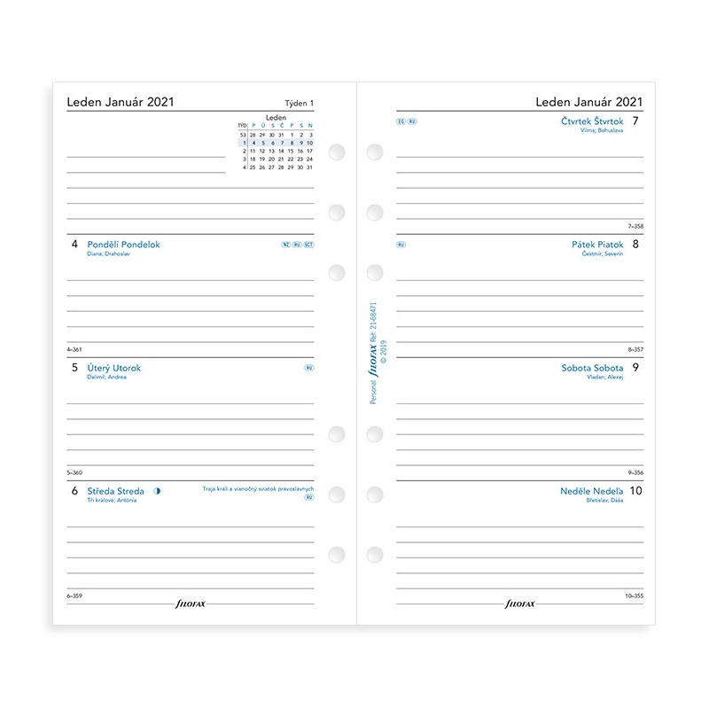 Obash: kalendář týden/2 strany ČJ a SJ, rozřaďovač se 6 záložky, pravítko/záložka, seznam úkolů (2 listy), bíle linajkové papíre (2 listy), bílé čtverečkové papíry (2 listy), bílé čisté papíre (2 listy), modré linajkové papíry (2 listy), zelené linajkové papíry (2 listy), růžové linajkové papíry (2 listy), adresář (4 listy), 12 kapes na karty, multifunkční elastický držák, 1 vertikální kapsy, 6 kapes na karty, 3 vertikální kapsy, 1 kapsa na zip, elastické poutko na pero, Hloubka - 31mm, Šířka - 125mm, Výška - 208mm