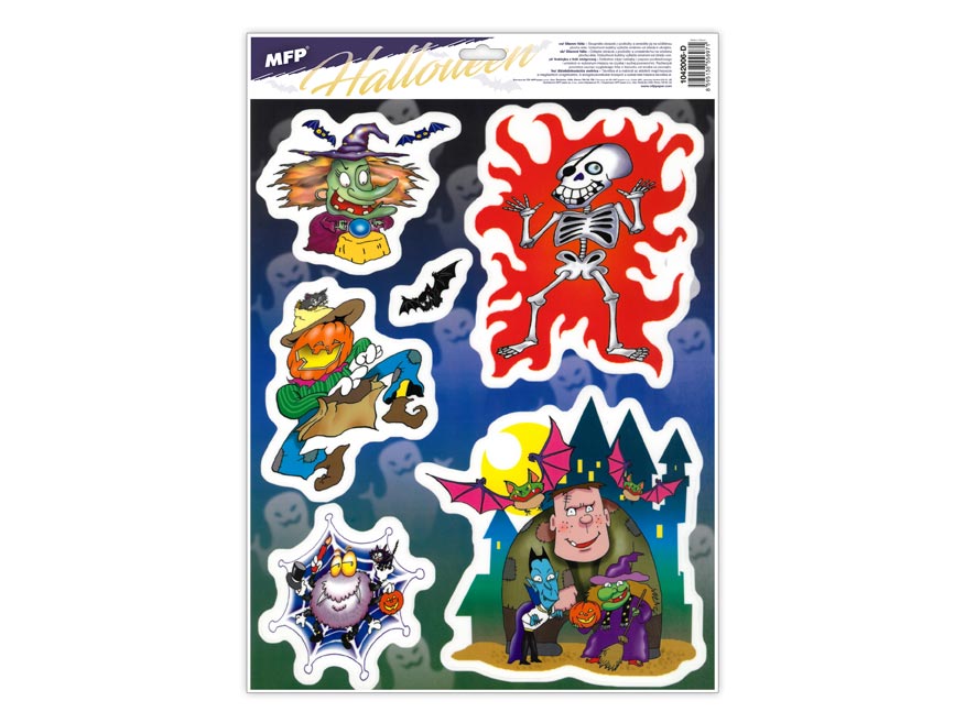 Okenní fólie - Halloween - Vyzdobte si okno těmito krásnými samolepkami na okno. Vytvoří Vám tu pravou halloweenskou atmosféru. NÁVOD: Sloupněte z podložky obrázek a umístěte na čisté, případně navlhčené sklo stranou, která byla na podložce. Obrázek elektrostaticky přilne. Folie se snadno sloupne a dá se přemístit. Uvedená cena je za 1 ks, dodáváme v mixu po 4 ks dle skladové zásoby.