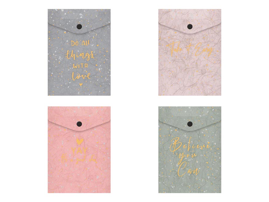 Popis k výrobku: složka M druk A6 PP potisk LUX mix č.2 TIE 5370568 Složka z PolyPropylenu (PP), která se zavírá pomocí druku (patentky) - velikost A6. Se zajímavou texturou a motivačním textem.