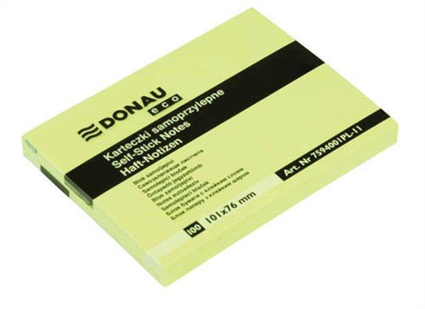 Samolepicí bloček, 101x76 mm, 100 lístků, DONAU ECO, žlutý ,balení 100 ks