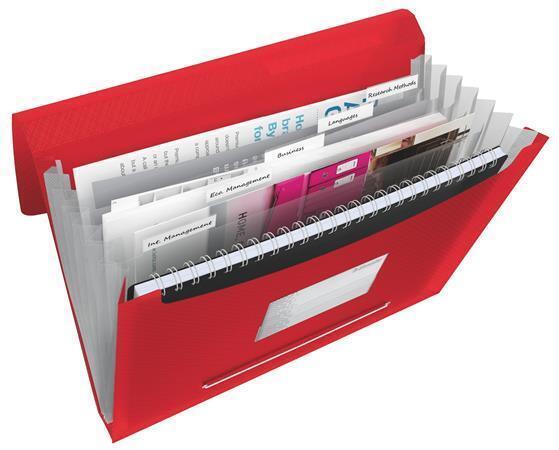 Aktovka s držadlem a 6 přihrádkami, Vivida červená, A4, plast, ESSELTE