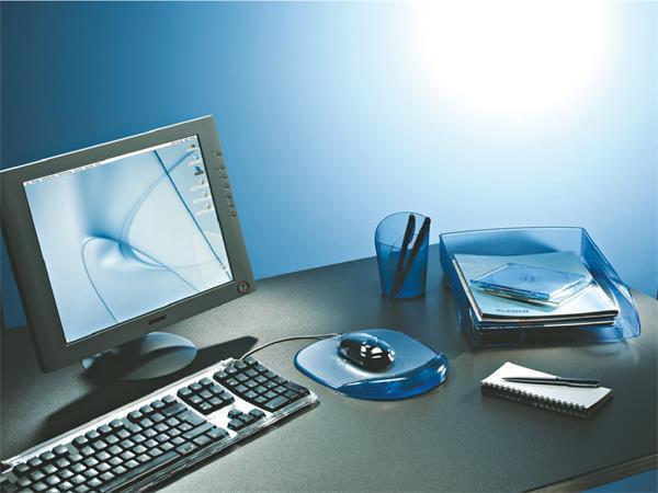 Popis k výrobku: Gelová podložka pod myš Crystal, transparentní modrá, ESSELTE