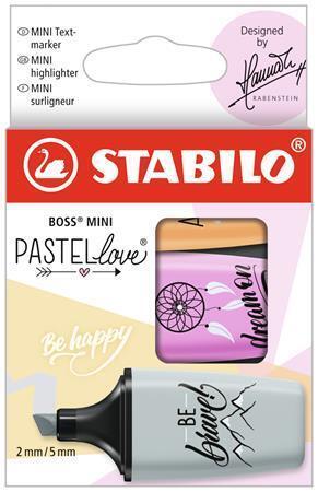 Popis k výrobku: Zvýrazňovače Boss Mini Pastellove, sada, 3 pastelové barvy, 2-5 mm, STABILO 07/03-59
