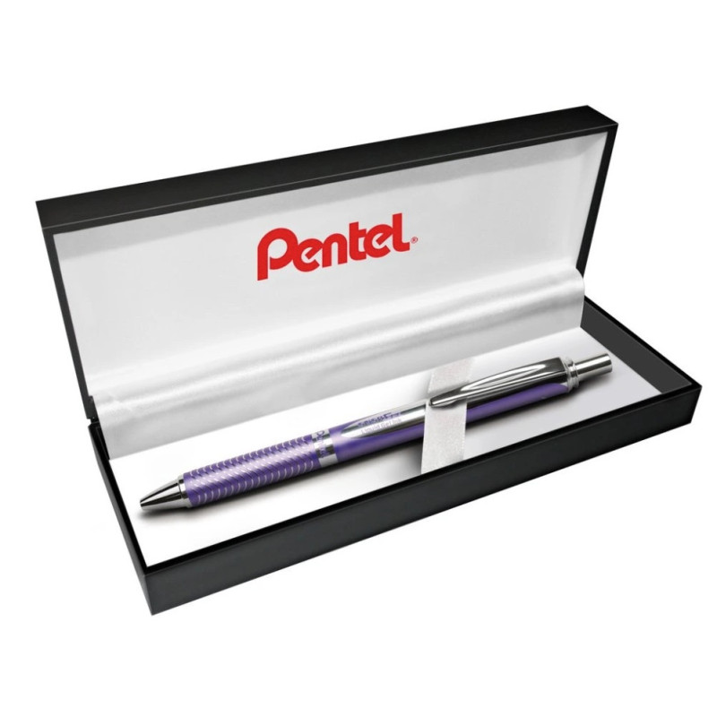 luxusní gelové pero s unikátní gelovou náplní EnerGel, mačkací mechanismus a lehce vroubkovaný úchop, který neklouže a zajišťuje pevné a příjemné držení, odolný niklový hrot a kvalitní celokovové tělo, módní design s lesklými kovovými doplňky, černá barva inkoustu, široký výběr barev, vysoce výkonný rychleschnoucí inkoustová technologie, která se nemaže, neteče a je vhodná pro leváky, šířka hrotu 0,7mm, stopa 0,5mm, baleno v elegantní dárkové krabičce, vyměnitelná náplň LR7