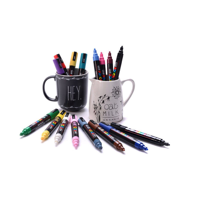 Víceúčelový” člen řady POSCA je vhodný pro vybarvování i pro kreslení elegantních a přesných linií. Bezkonkurenční inkoust s vysokou krycí schopností je určen i na tmavé povrchy. Kvalita a sytost barev ohromí jak umělce tak i fandy, kteří budou nadšeni “magickým” efektem POSCA. Nabízí neomezené kreativní možnosti. Barvy jsou vrstvitelné, mísitelné, vodou ředitelné