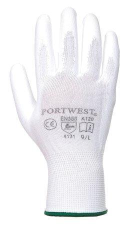 Pracovní rukavice máčené na dlani a prstech v polyuretanu, velikost 9, bílé