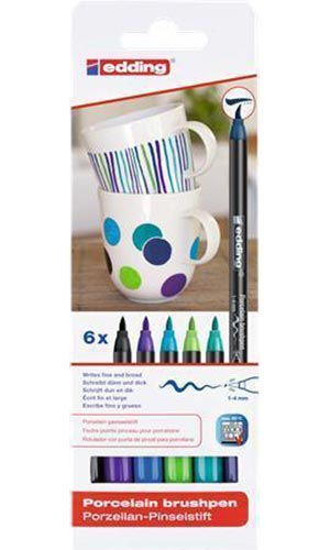 Štětcový popisovač na porcelán 4200 Cool color, sada 6 různých barev, EDDING 7580206002