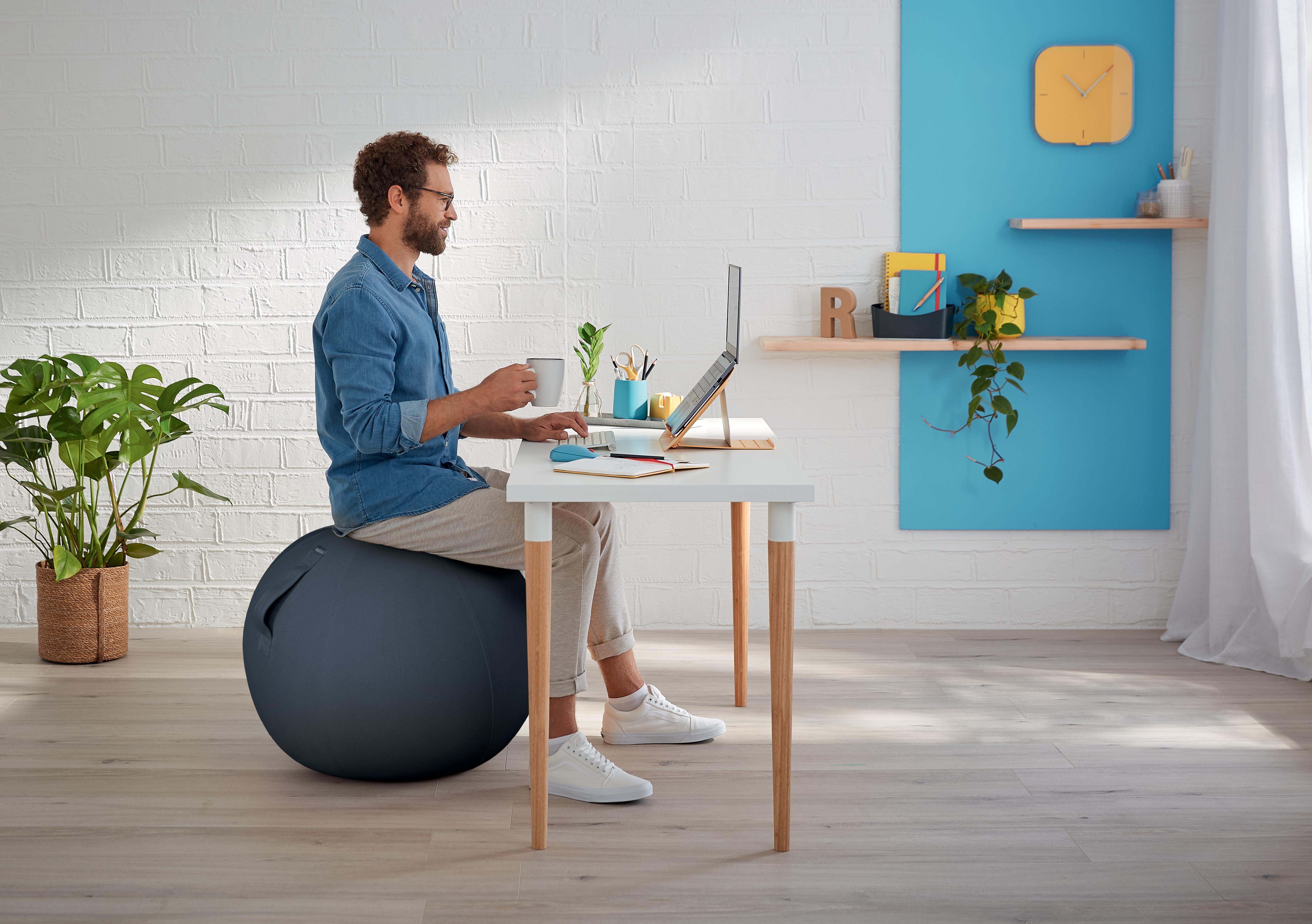 gymnastický míč na sezení, který vás udrží aktivní a příjemně naladěné po celý den, podporuje pohyb zad a středu těla, zlepšuje držení těla, flexibilitu a pomáhá zmírňovat bolesti zad, ideální pro použití jako alternativa ke kancelářské židli, která vás udrží svěží a v pohybu i při práci, vhodný také pro odpočinkové kouty a místnosti v kancelářských prostorách, použití pro cvičení jako je jóga, zdravotní nebo balanční cvičení, protahování zad, fyzioterapie apod., je vybaven pevnou a odolnou rukojetí pro snadné přenášení z místnosti do místnosti, univerzálně vhodný průměr 65 cm, pevný materiál vnitřního míče bez ftalátů, který udrží 100 kg váhy, součástí je vnitřní gymnastický míč, látkový potah míče, ruční vzduchová pumpa a 2 uzávěry, rychlá a snadná instalace nafouknutím vnitřního míče ruční pumpičkou, která je součástí dodávky, a zasunutím uzávěru, textilní obal míče lze sejmout a z hygienických důvodů prát v ruce