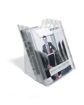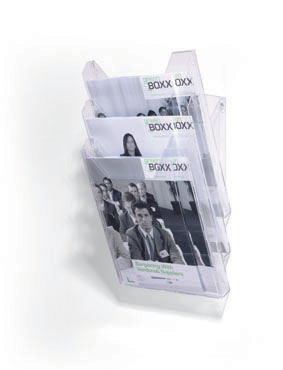 držák na prospekty a letáky ve formátu A4 (až do rozměru 311 x 240 mm), jedná se o flexibilní řešení 2v1, protože pouhým otočením zadních dílů se ze stolního držáku na prospekty stane závěsný na stěnu, snadná a rychlá instalace, rozměry při umístění na stůl (šxvxh): 242 x 291 x 162 mm, rozměry při umístění na stěnu (šxvxh): 242 x 300 x 152 mm
