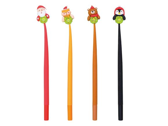Zábavné, gelové pero s modrou náplní a vánočními motivy. Pero má příjemný úchop a díky gelové náplni se s ním dobře píše. Barva: červená, oranžová, hnědá, černá Dodáváme ve 4 vánočních motivech dle skladové dostupnosti. Uvedená cena je za 1 ks.