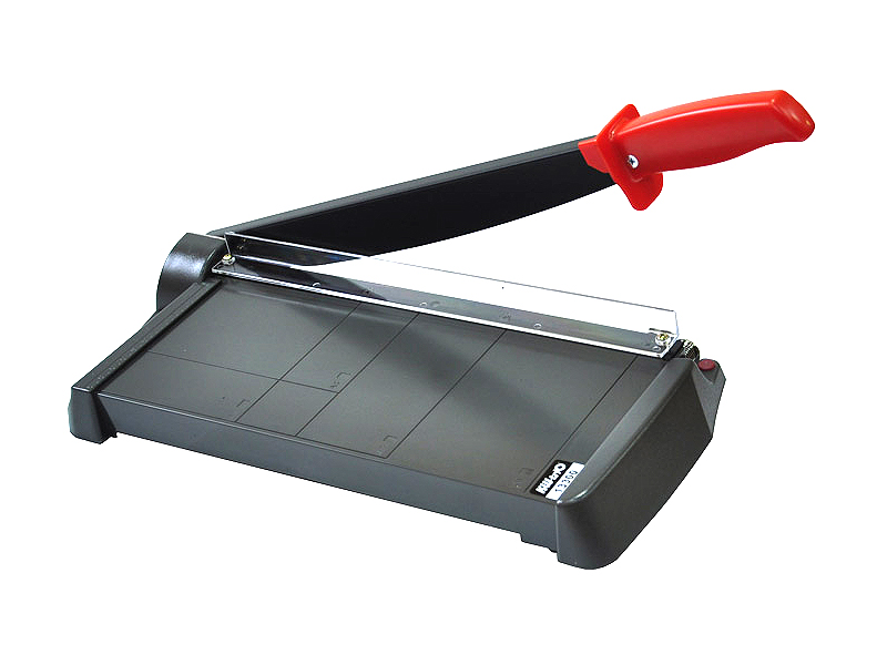 pákové řezačky s plastovým stolem s ABS povrchem a robustním uložením broušeného plechového nože s plastovým ochranným krytem, s vyznačenými měřítky a DIN formáty, KW 13300 - délka řezu je 307 mm a maximální kapacita 7 listů (70g/m), velikost pracovního stolu je 408 x 176 mm