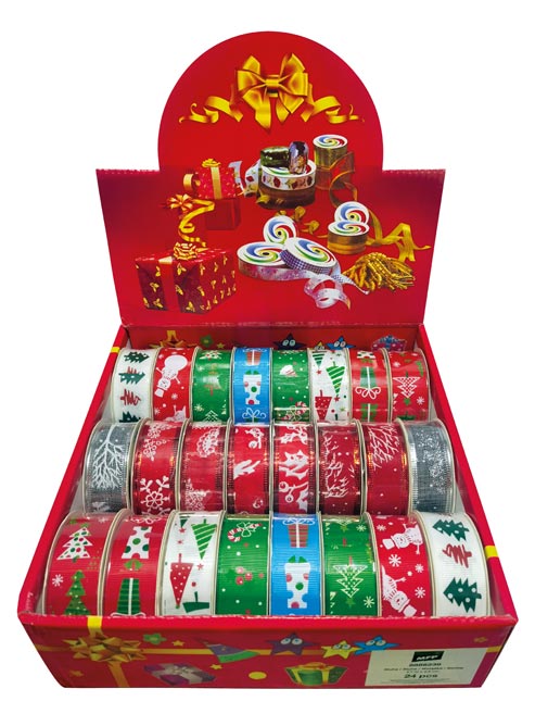 stuha vánoční 2,7m x 2,5cm box mix 8886239