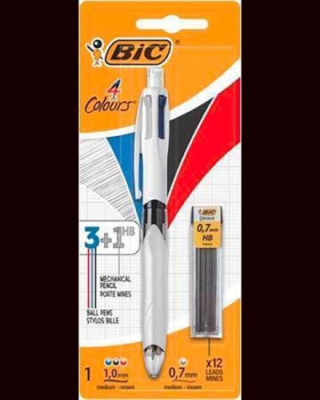 Univerzální kuličkové pero BIC 4 Colours, je kombinace tříbarevného pera a mikrotužky.