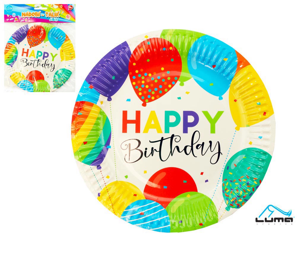 Papírový talíř Happy Birthday / 18cm / 6ks