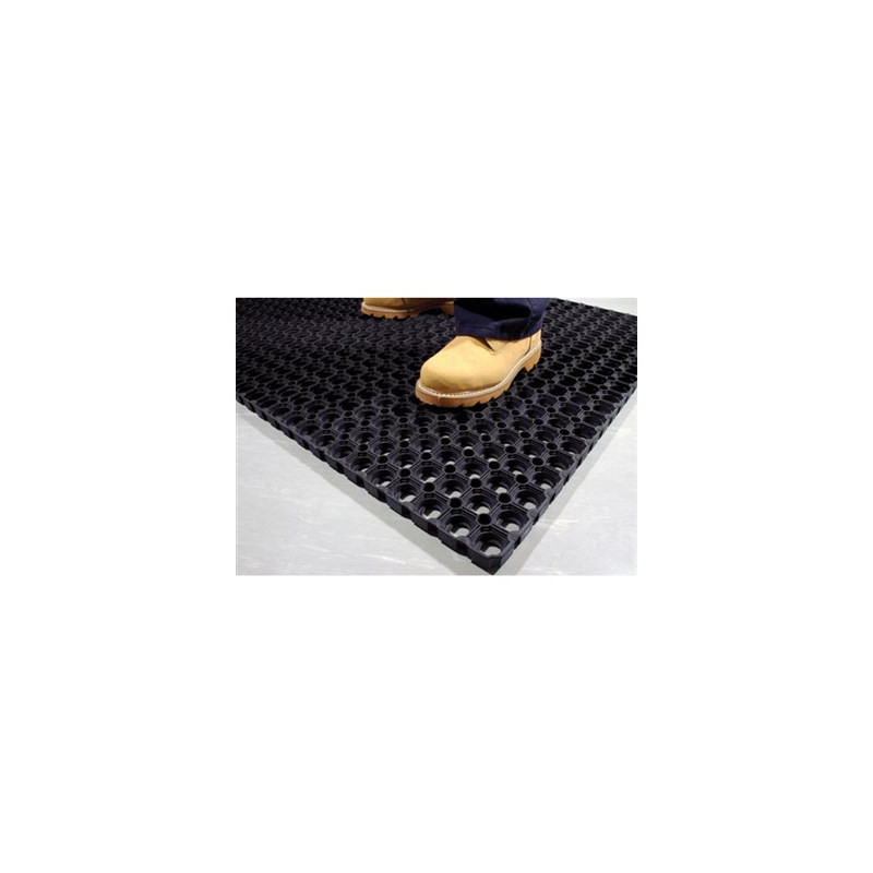 Popis k výrobku: Gumová venkovní rohož - černá / 80 x 120 cm vysoce odolná gumová rohož ve tvaru včelího plástu pro frekventované provozy, dlouhá životnost v náročných venkovních podmínkách, otvory umožňují propadnutí nečistot a kamínků skrz rohož, obzvlášť výhodná pro mokré, ledové nebo sněhové prostředí, pro vytvoření větších celků jsou k dispozici spojky, vhodné i jako rohož do mokrého průmyslového prostředí, hmotnost 10 kg, výška 23 mm