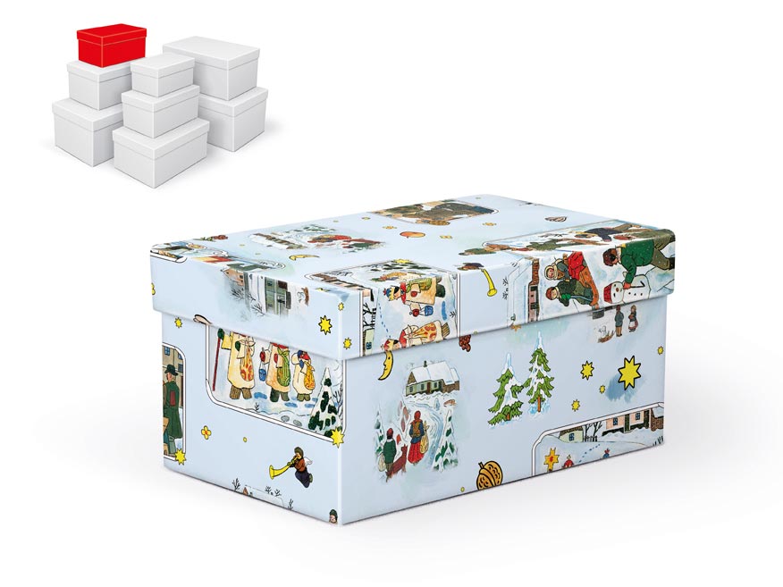 Vánoční, dárková krabice s motivy Josefa Lady o rozměrech 18 x 11 x 9 cm Vytvořte si doma atmosféru klasických českých vánoc. Dodáváme pouze v setu 8 dárkových krabiček, které jsou ve stejném designu, ale v různých velikostech. Při vložení do košíku se automaticky vloží i ostatní krabičky, tak aby jste měli v košíku vždy celý, kompletní set. Uvedená cena je za 1 ks. Materiál: 1,5 mm karton, potažený luxusním papírem Set obsahuje tyto krabice: 5370762 Krabice dárková vánoční B-V005-AL 16x10x8 cm 5370763 Krabice dárková vánoční B-V005-BL 18x11x9 cm 5370764 Krabice dárková vánoční B-V005-CL 20x12x10 cm 5370765 Krabice dárková vánoční B-V005-DL 22x14x11 cm 5370766 Krabice dárková vánoční B-V005-EL 24x16x12 cm 5370767 Krabice dárková vánoční B-V005-FL 26x17x13 cm 5370768 Krabice dárková vánoční B-V005-GL 28x18x14 cm 5370769 Krabice dárková vánoční B-V005-HL 30x19x15 cm