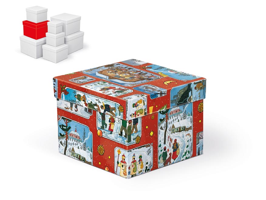 Vánoční, dárková krabice s motivy Josefa Lady o rozměrech 16 x 16 x 12 cm Dodáváme pouze v setu 8 dárkových krabiček, které jsou ve stejném designu, ale v různých velikostech. Při vložení do košíku se automaticky vloží i ostatní krabičky, tak aby jste měli v košíku vždy celý, kompletní set. Uvedená cena je za 1 ks. Materiál: 1,5 mm karton, potažený luxusním papírem Set obsahuje tyto krabice: 5370770 Krabice dárková vánoční C-V005-AL 8x8x8 cm 5370771 Krabice dárková vánoční C-V005-BL 10x10x9 cm 5370772 Krabice dárková vánoční C-V005-CL 12x12x10 cm 5370773 Krabice dárková vánoční C-V005-DL 14x14x11 cm 5370774 Krabice dárková vánoční C-V005-EL 16x16x12 cm 5370775 Krabice dárková vánoční C-V005-FL 18x18x13 cm 5370776 Krabice dárková vánoční C-V005-GL 20x20x14 cm 5370777 Krabice dárková vánoční C-V005-HL 22x22x15 cm
