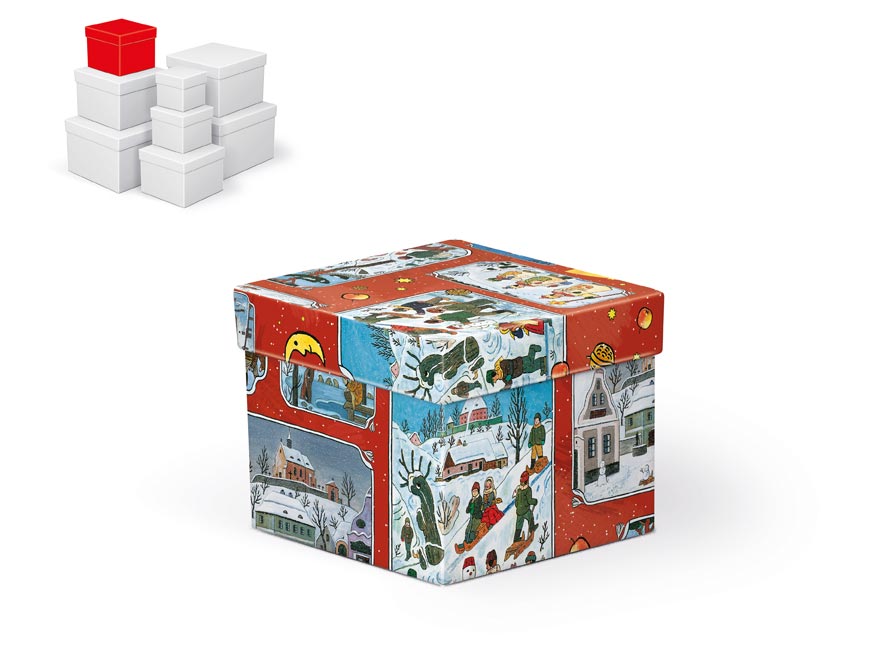 Vánoční dárková krabice s obrázky Josefa Lady o rozměrech 12 x 12 x 10 cm Dodáváme pouze v setu 8 dárkových krabiček, které jsou ve stejném designu, ale v různých velikostech. Uvedená cena je za 1ks. Při vložení do košíku se automaticky vloží i ostatní krabičky, tak aby jste měli v košíku vždy celý, kompletní set. Materiál: 1,5 mm karton, potažené luxusním papírem Set obsahuje tyto krabice. 5370770 Krabice dárková vánoční C-V005-AL 8x8x8cm 5370771 Krabice dárková vánoční C-V005-BL 10x10x9cm 5370772 Krabice dárková vánoční C-V005-CL 12x12x10cm 5370773 Krabice dárková vánoční C-V005-DL 14x14x11cm 5370774 Krabice dárková vánoční C-V005-EL 16x16x12cm 5370775 Krabice dárková vánoční C-V005-FL 18x18x13cm 5370776 Krabice dárková vánoční C-V005-GL 20x20x14cm 5370777 Krabice dárková vánoční C-V005-HL 22x22x15cm