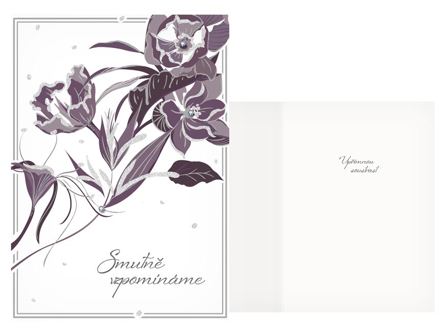 Úmrtí blízké osoby je vždy tragická událost. Vyjádřete kondolencí upřímnou soustrast a soucit pozůstalým. Kondolenční přání a smuteční květiny Vám zajistí důstojné rozloučení s Vašim blízkým člověkem. Text na přední straně přání: Smutně vzpomínáme Text uvnitř přání: Upřímnou soustrast Papír: pohlednicový karton 240g Přání je v baleno sáčku, součástí balení je i dopisní obálku.