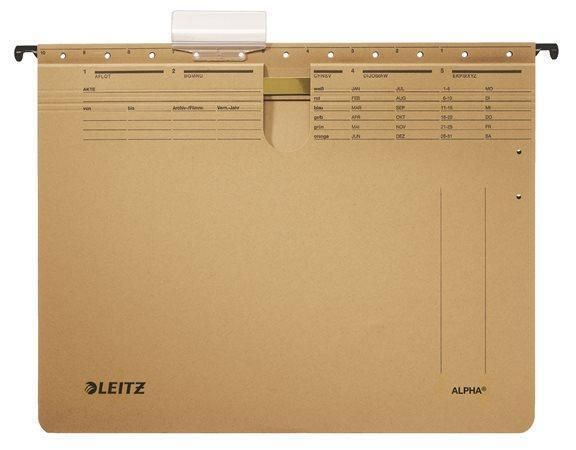 Popis k výrobku: Závěsné desky ALPHA® s rychlovazačem, přírodní hnědá, A4, karton, LEITZ ,balení 25 ks