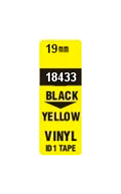 Pásky D1 vinylové permanentní - 19 mm x 5,5 m / černý tisk / žlutá páska