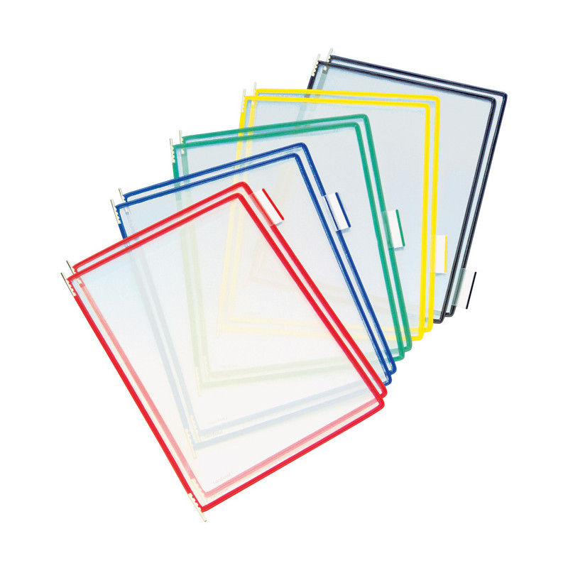 barevné kapsy sloužící pro přehlednou prezentaci, formát A4, otevřené shora, balení 10 ks, každé balení obsahuje ještě 5 ks plastových štítků na popisky, kterými můžete kapsy odlišit, určeny pro pultový stojan a závěsný držák Tarifold