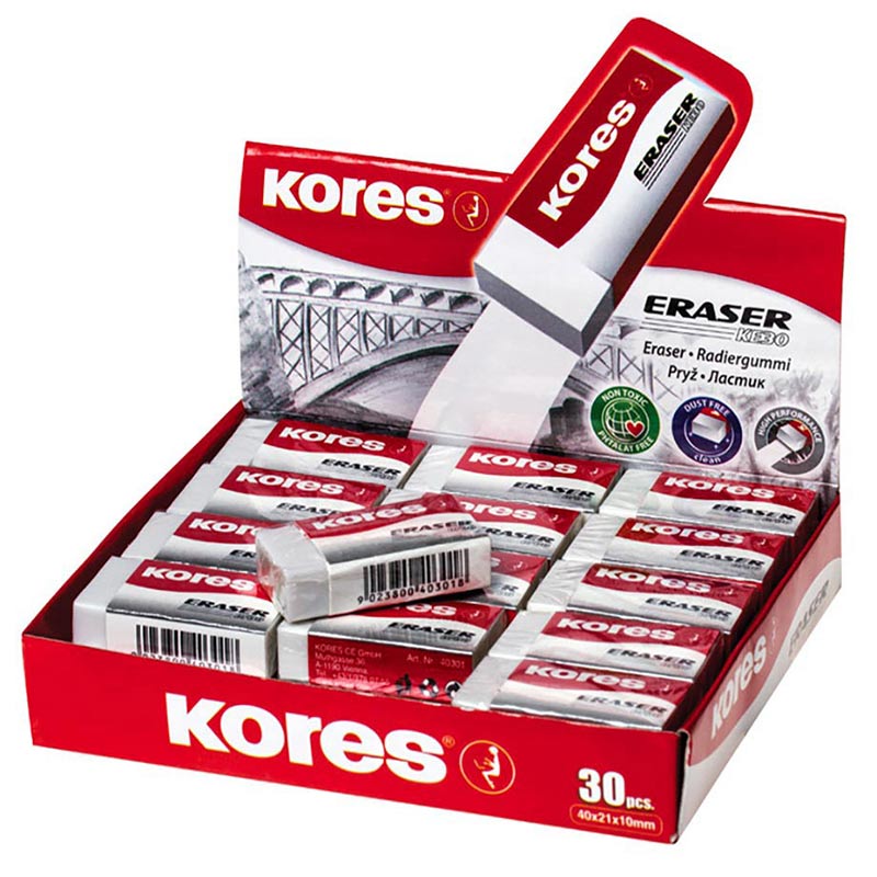 vysoce kvalitní PVC pryž, jemné a čisté gumování, nešpiní, neabrasivní – neobsahuje brusné částice, ideální pro všechny tvrdosti obyčejných tužek, netoxické, neobsahují ftaláty a latex, s papírovým pouzdrem, ideální do školy, pro kancelář i domácnost, balení K20 – 20 kusů, K 30 – 30 kusů