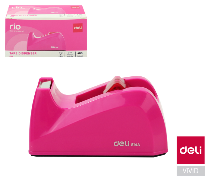 Popis k výrobku: Stolní odvíječ lepicí pásky DELI - růžová