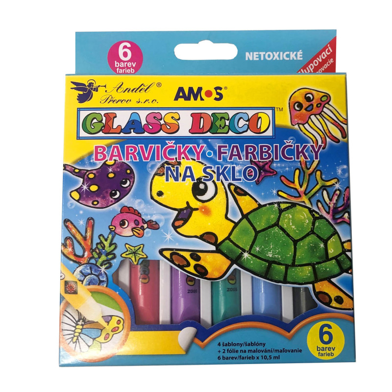 Barvičky na sklo sada 6 barev 10,5 ml + fólie a šablony. NAZDOBTE SI SKLO DLE VLASTNÍ FANTAZIE! Vhodné na okno, zrcadlo, dlaždice, aj.