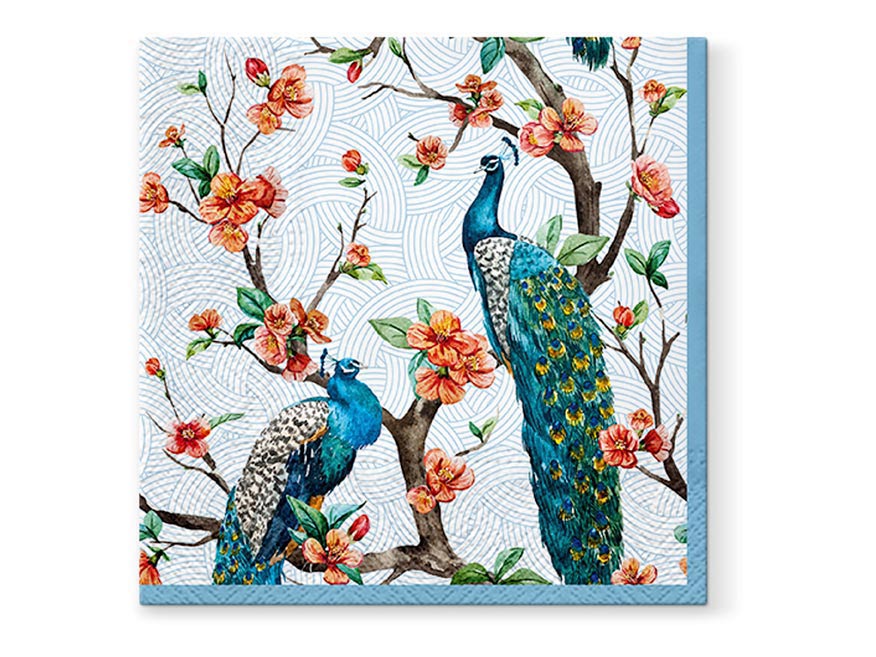 Třívrstvý papírový ubrousek. Krásné kvalitní ubrousky s motivem pávů na rozkvetlých větvích stromu vykouzlí příjemnou atmosféru. Ideální na zahradní prostírání, oslavy nebo na zkrášlení interiéru. MOTIV: pávi na stromu POČET UBROUSKŮ V BALENÍ: 20 KS Uvedená cena je za 1 balení po 20 ks.