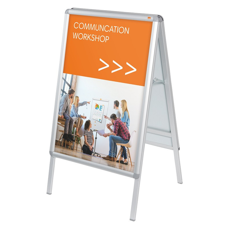 Clip rámy Nobo se snadno používají a umožňují vystavovat plakáty a informace chráněné proti vlivům počasí. Antireflexní fólie z PVC je chrání před prachem a špínou, vkusný hliníkový rám zaručuje konzistentní a elegantní vzhled. Používejte vývěsky pro vytvoření koordinovaného, profesionálně vypadajícího prostředí. Reklamní stojan A1.