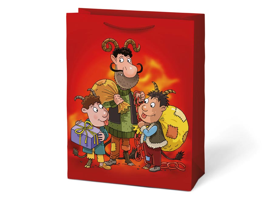 Papírová dárková taška T5 s motivem Mikuláše nebo čertů. Tašky dodáváme ve dvou motivech, s čerty nebo s mikulášem. Taška je opatřena pevným uchem pro snadné nošení a kartičkou kam můžete napsat jméno nebo krátké věnování. Pokud nemáte čas balit dárek do dárkového balícího papíru tak právě pro Vás máme široký výběr dárkových tašek. Gramáž papíru: 157 g Rozměr: 260 x 340 x 138 mm Dodáváme v mixu po 2 ks dle skladové zásoby. Uvedená cena je za 1 ks.