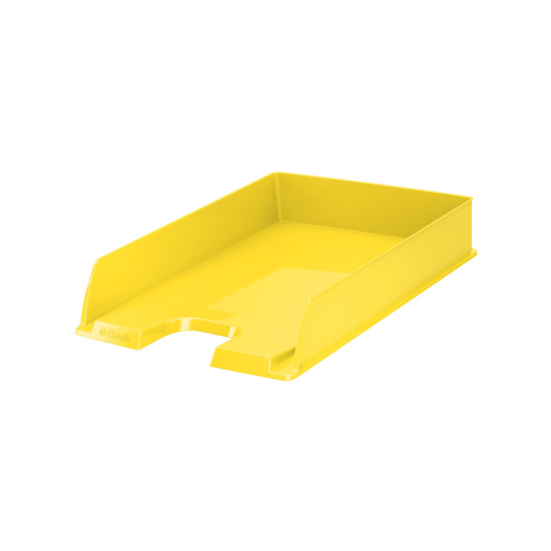 moderní odkladač pro uložení dokumentů formátu A4 na pracovním stole s unikátním embosovaným povrchem a ve svěžích barvách řady VIVIDA, kolmé nebo předsazené stohování ve 3 pozicích pro lepší organizaci, zaoblený výřez pro snazší přístup k dokumentům
