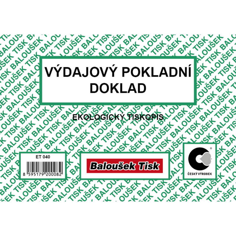 Výdajový pokladní doklad Baloušek A6 / nečíslovaný / 50 listů / ET040