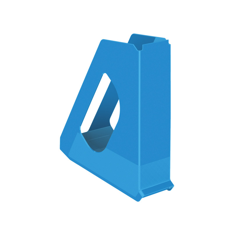 Popis k výrobku: Stojan na spisy Vivida - modrá moderní stojan na časopisy pro uložení dokumentů formátu A4 na pracovním stole s unikátním embosovaným povrchem a ve svěžích barvách řady Esselte VIVIDA, snížený hřbet pro jasnou identifikaci obsahu z přední strany, integrovaný úchyt pro snadné vytažení z police