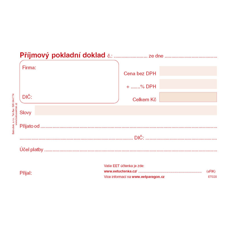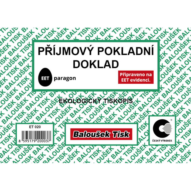 Příjmový pokladní doklad Baloušek A6 / nečíslovaný / 50 listů / ET020