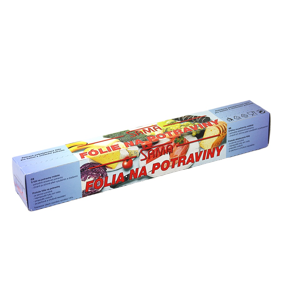 Potravinářská frisch fólie v boxu s řezačkou pro domácnost. Potravinářská fólie 30 cm x 30 m v krabičce, je určená k balení, přepravě, uchovávání a prodeji zejména potravinářského sortimentu, jako jsou masné výrobky, nejrůznější lahůdky, sýry, ovoce, ale i pečivo a mnohé další.