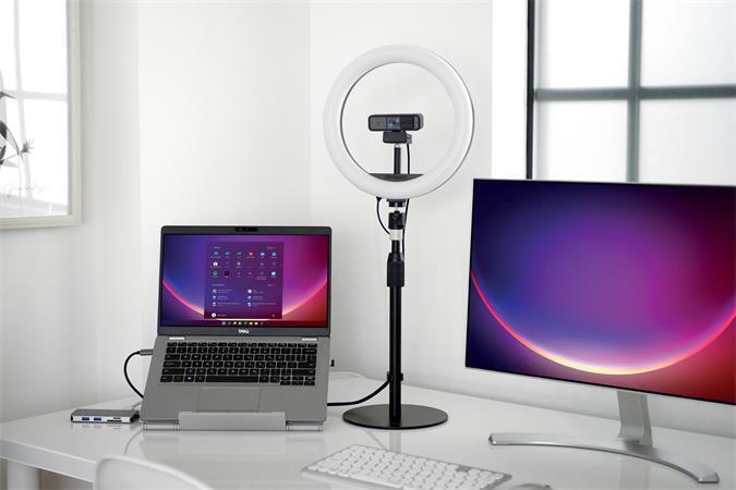Střed světelného prstence je vybaven držákem webkamery, který zajišťuje rovnoměrné a dokonalé rozložení světla - i když změníte úhel webkamery (stojan na kameru lze dokoupit)