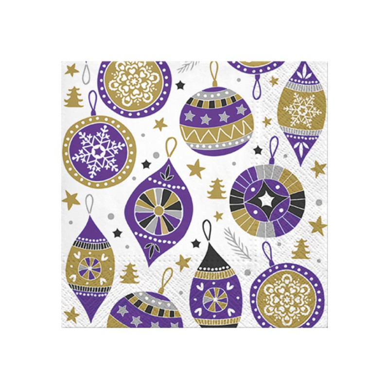 Papírové vánoční ubrousky - Kvalitní vánoční ubrousky z třívrstvého papíru s motivem vloček ve tvaru baňky. Jsou krásným vánočním doplňkem, které zpestří vánoční prostírání a vykouzlí příjemnou atmosféru.