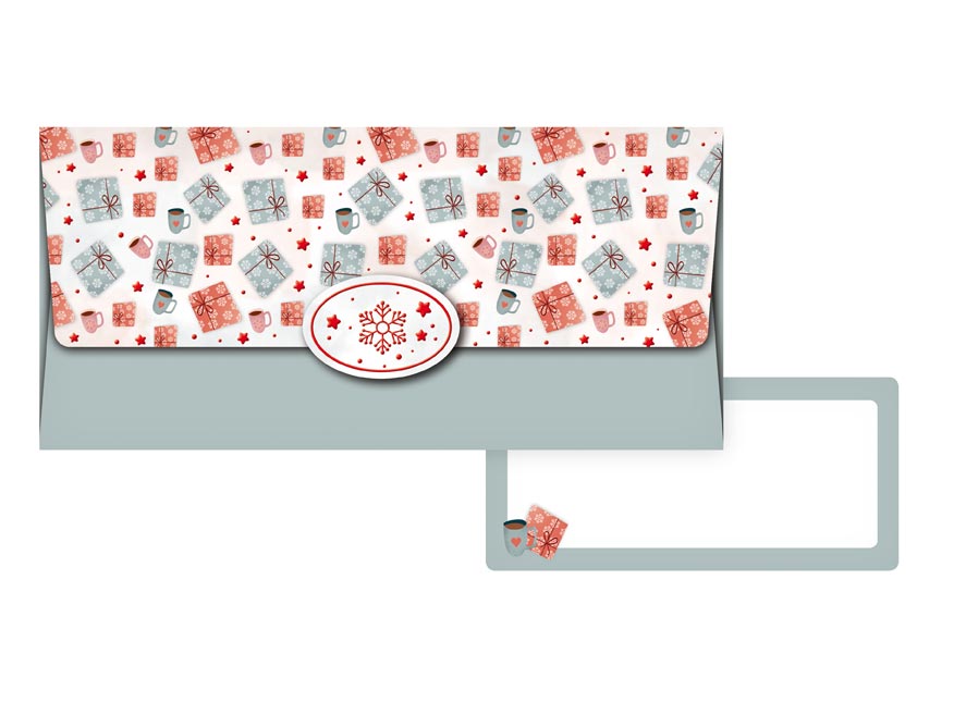 Dárková obálka na peníze s vánočním motivem a uzavíratelnou klopou. Darujte svým blízkým dárek k Vánocům v podobě obálky na peníze. Do obálky lze vložit peníze nebo dárkový poukaz. Uvnitř je kartička bez textu, na kterou můžete napsat věnování.