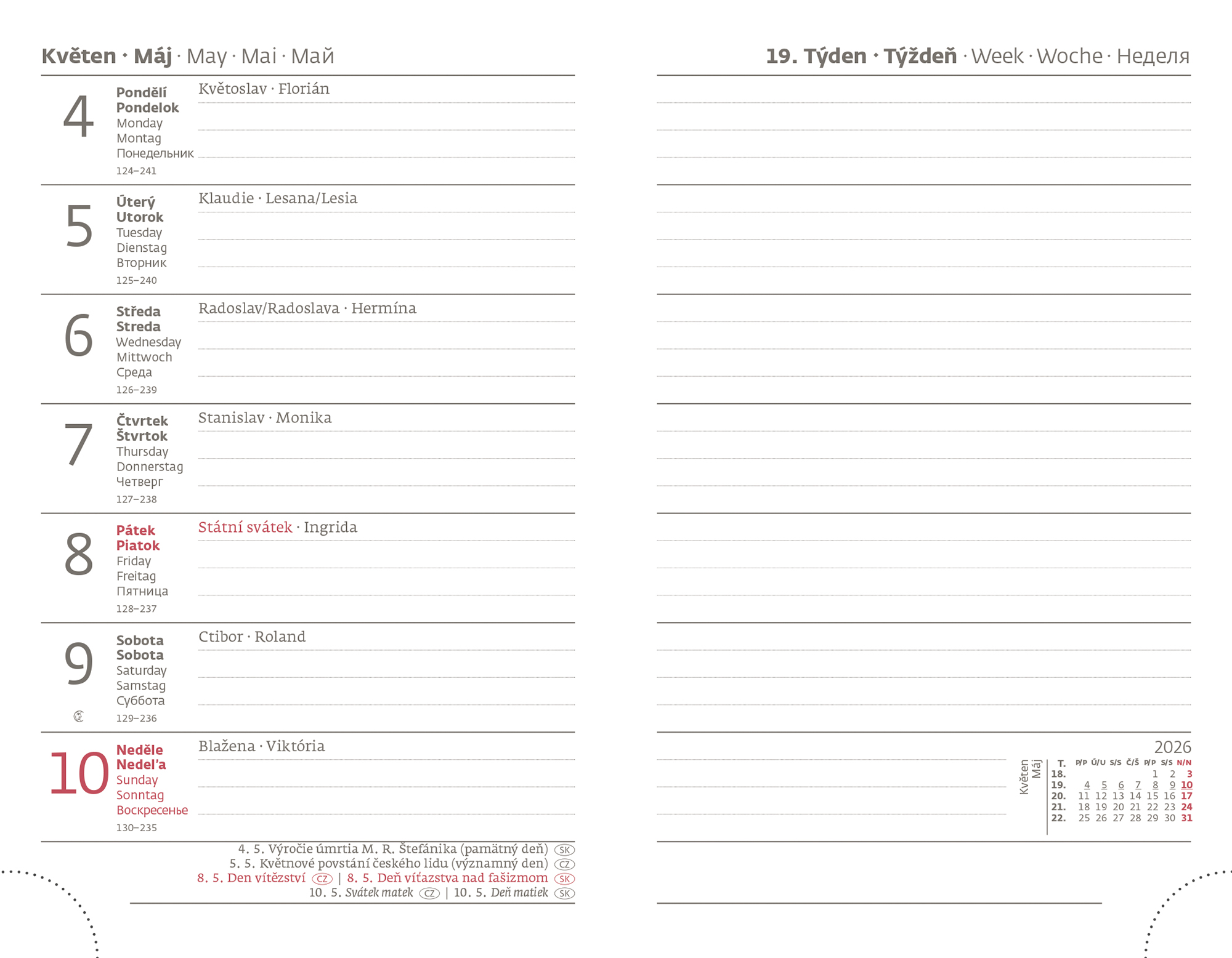 originální designové diáře se zajímavými motivy, které jsou upraveny speciální laminací s hevábným efektem, díky čemuž jsou velmi příjemné na dotek, doplněné gumičkou, mezinárodní svátky, plánovací kalendář, osobní údaje, měsíční přehled, adresář, formát 9 x 14 cm