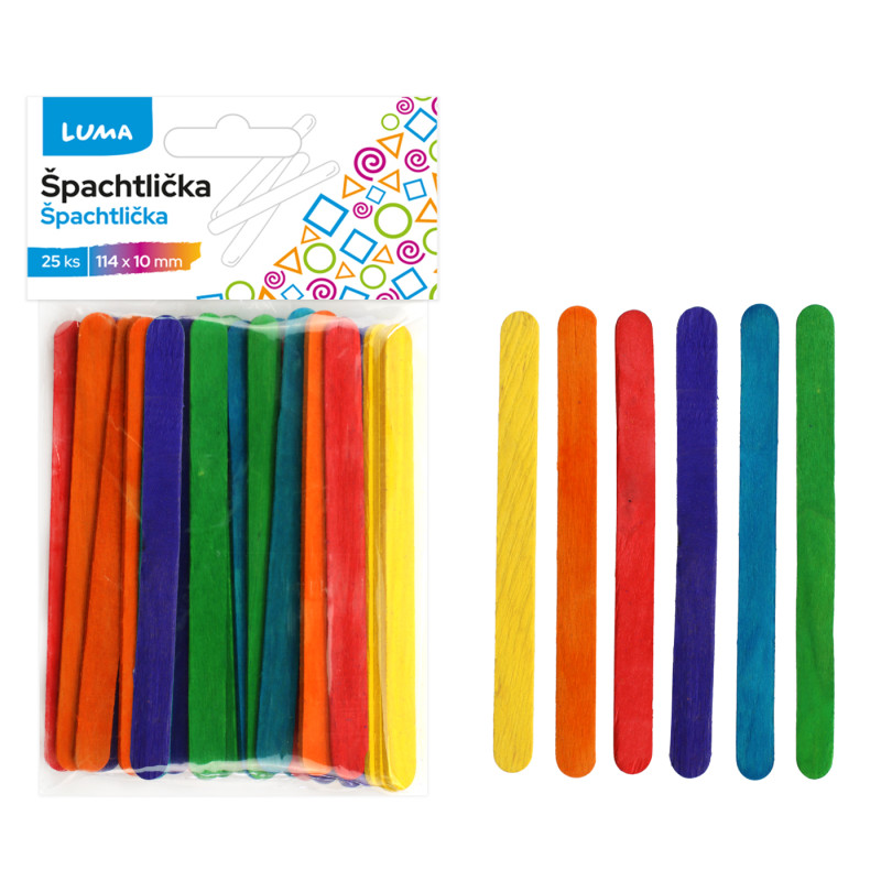Popis k výrobku: Špachtlička malá 114 x 10 mm - mix barev / 25 ks