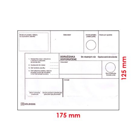 Doporučené obálky formátu B6 (125x176 mm), jsou samopropisovací a jsou vhodné na automatické zpracování na poštovních třídících linkách.