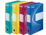 Pevné a stabilné archivačné škatule s vekom vo výrazných farbách zo silného drevnatého kartónu potiahnutého laminom. Rámik na štítok, vystužené rohy krabice a spojovacie cvoky z kovu. Lesklé vyhotovenie vytvára prvotriedny vzhľad škatule a umožňuje jednoduché utieranie prachu. Inteligentná skladacia konštrukcia.