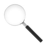 Lupa na čtení, zvětšení 3X, s průměrem čočky 100 mm. Rukojeť vyhotovena z černého plastu, čočka v kovovém rámu.